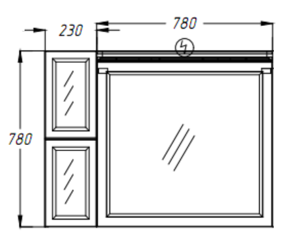 Дверцы с доводчиками (плавное закрывание) Зеркало без полочки Козырёк для зеркала с подсветкой и выключателем |