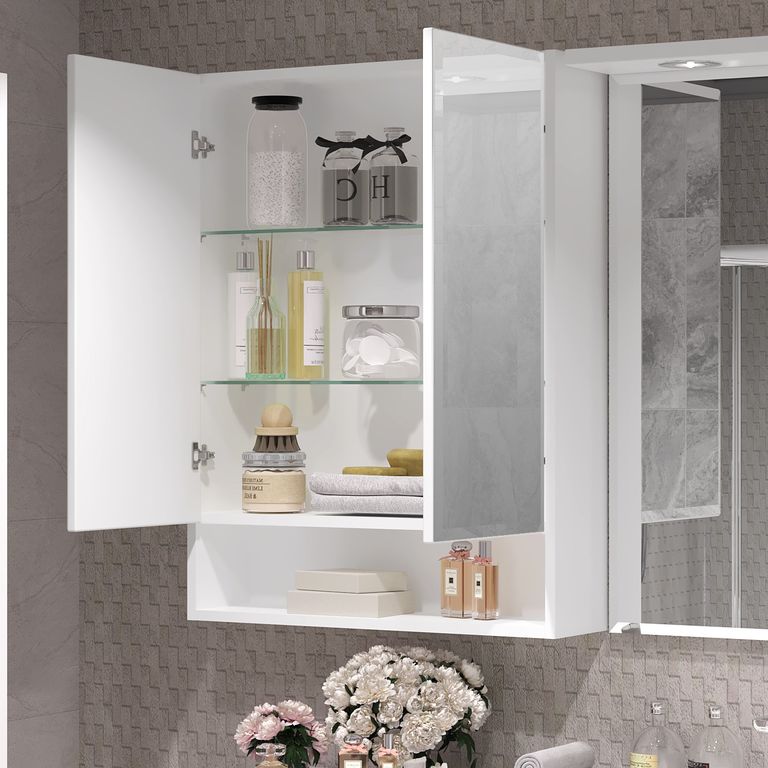Ящики тумбы с доводчиками (плавное закрывание) Зеркало с подсветкой и сенсорным выключателем Зеркальный шкафчик двухстворчатый без подсветки |