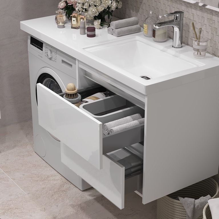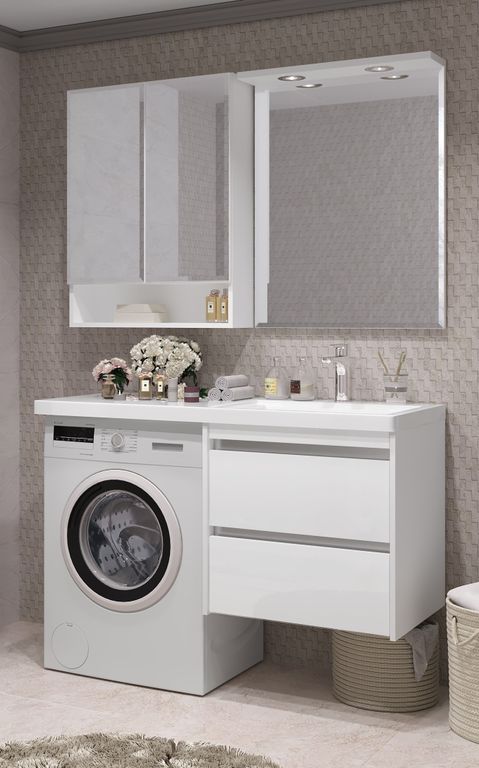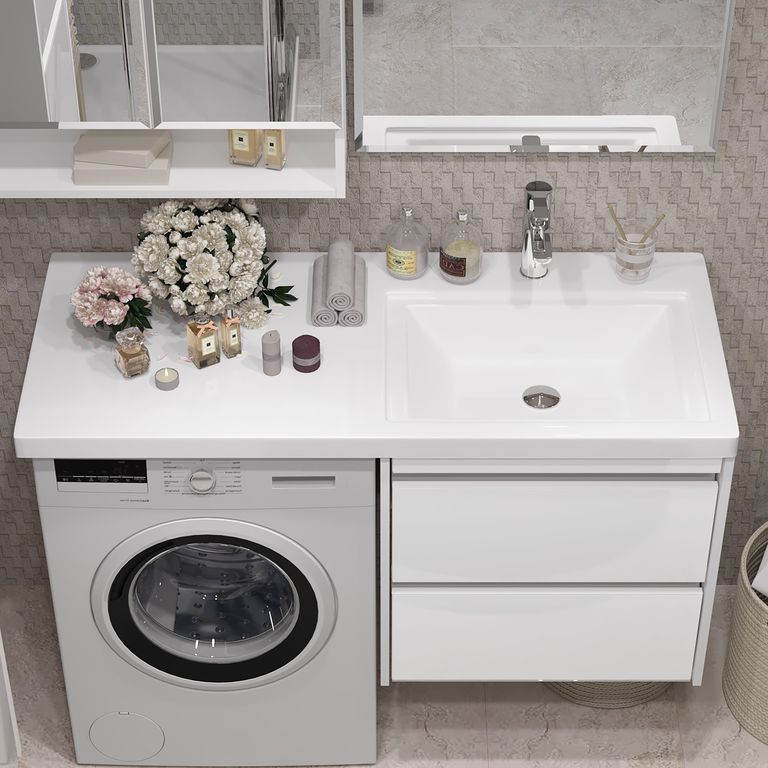 - ТУМБА С РАКОВИНОЙ ФРЕШ 120 БЕЛЫЙ ДЛЯ СТИРАЛЬНОЙ МАШИНЫ (РАКОВИНА СПРАВА, ФАСАДЫ СТЕКЛО)