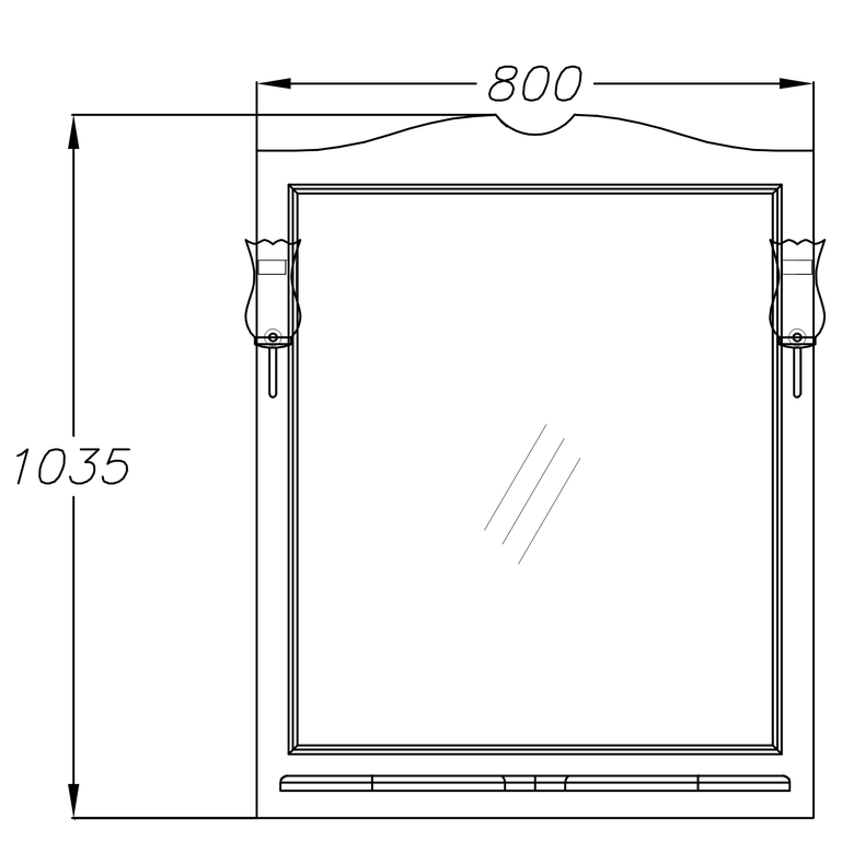 Зеркало с полочкой, 2-мя светильниками и выключателем |