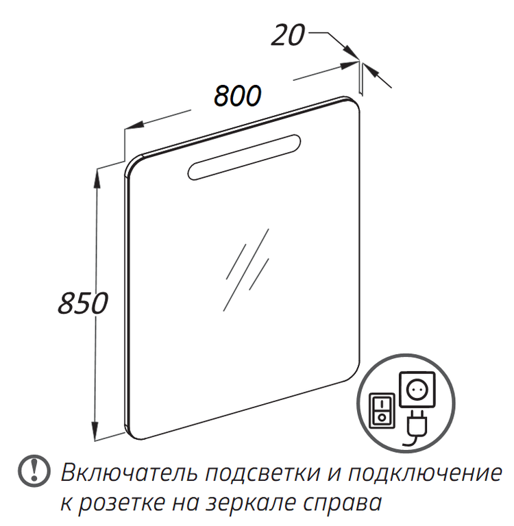 Зеркало со встроенной подсветкой, выключателем и розеткой |