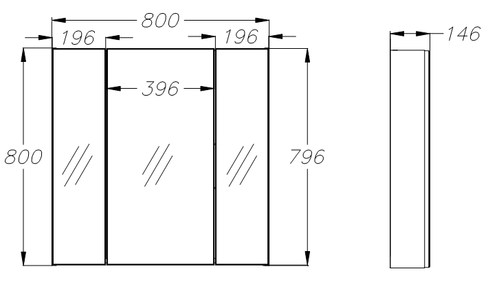 Зеркальный шкафчик трёхстворчатый без подсветки |