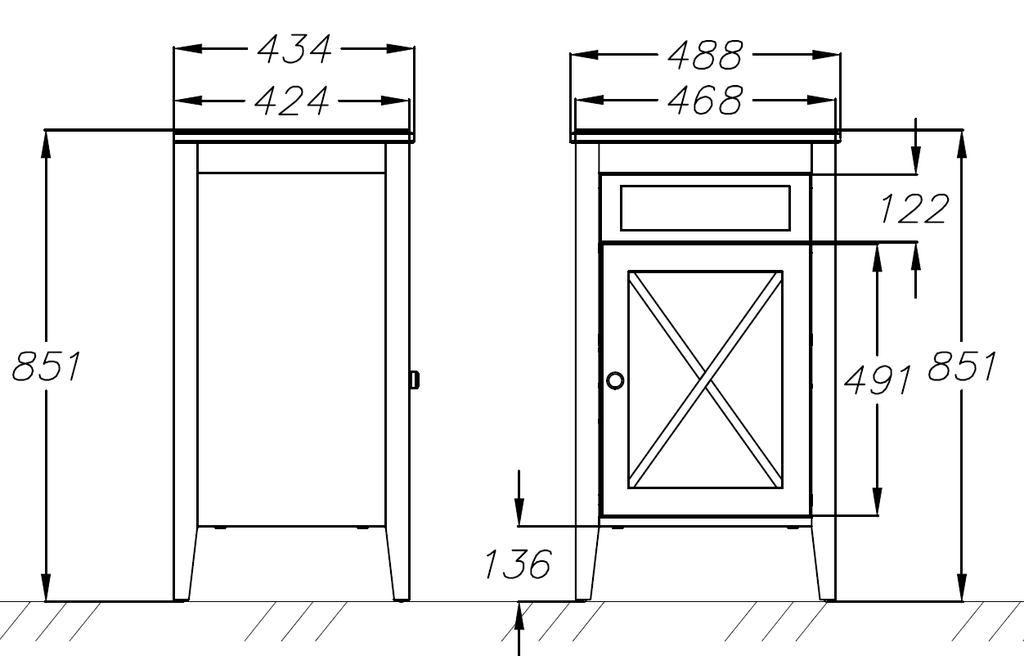 Петли справа Дверца с доводчиками (плавное закрывание) Ящик с системой открывания от нажатия "Push-to-Open" |