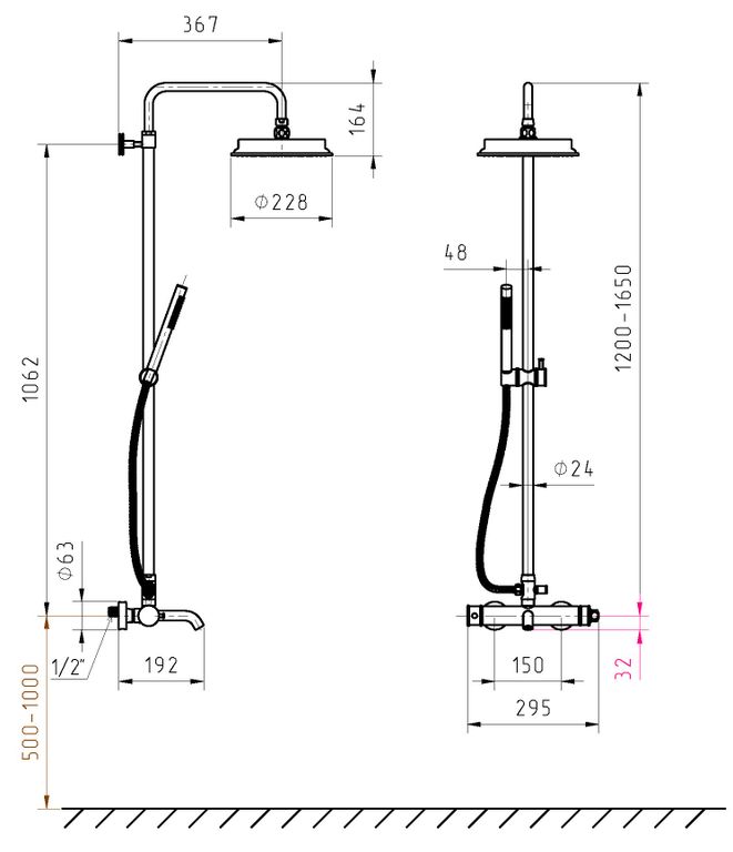 СМЕСИТЕЛЬ С ИЗЛИВОМ, ТРОПИЧЕСКИЙ ДУШ, РУЧНОЙ ДУШ (ЛЕЙКА), ШЛАНГ 150см, ДЕРЖАТЕЛЬ ЛЕЙКИ НА ШТАНГЕ ПОВОРОТНЫЙ |