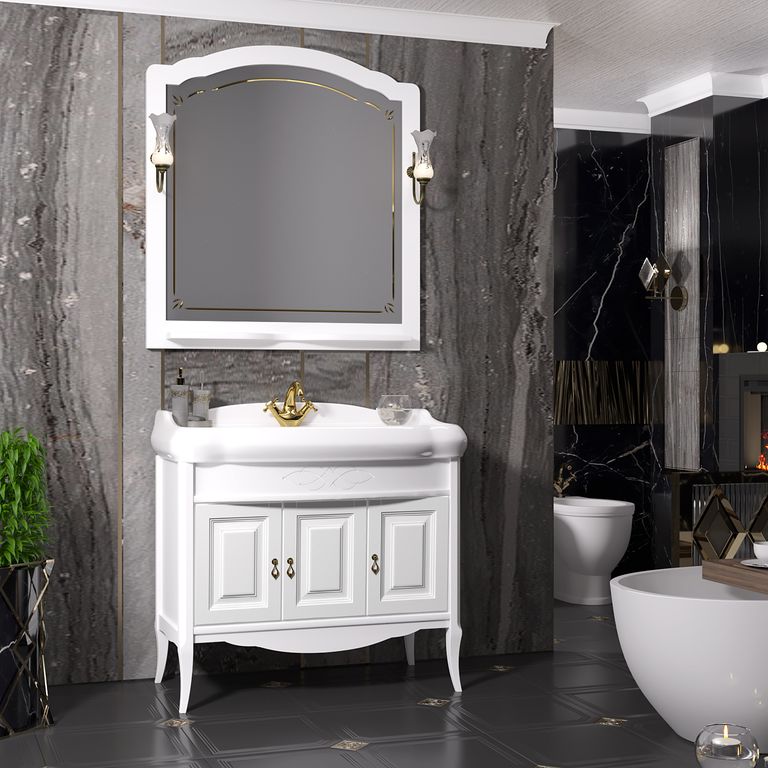 Дверцы с доводчиками (плавное закрывание) Зеркало с полочкой, 2-мя светильниками и выключателем |